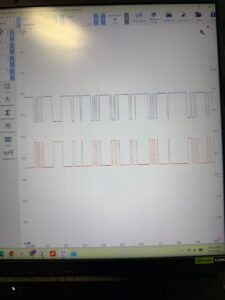 Colt followed Toyota’s published pin point test (PPT) for this code. Using an oscilloscope, he tested the BTH (battery) communication circuits. The initial waveform looked clean — good signal, no obvious problems.
