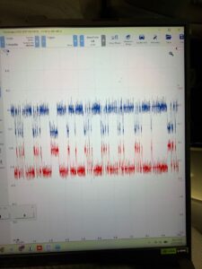 Then he ran the hybrid cooling blower motors on high for 30 seconds and checked again. The waveform went erratic.